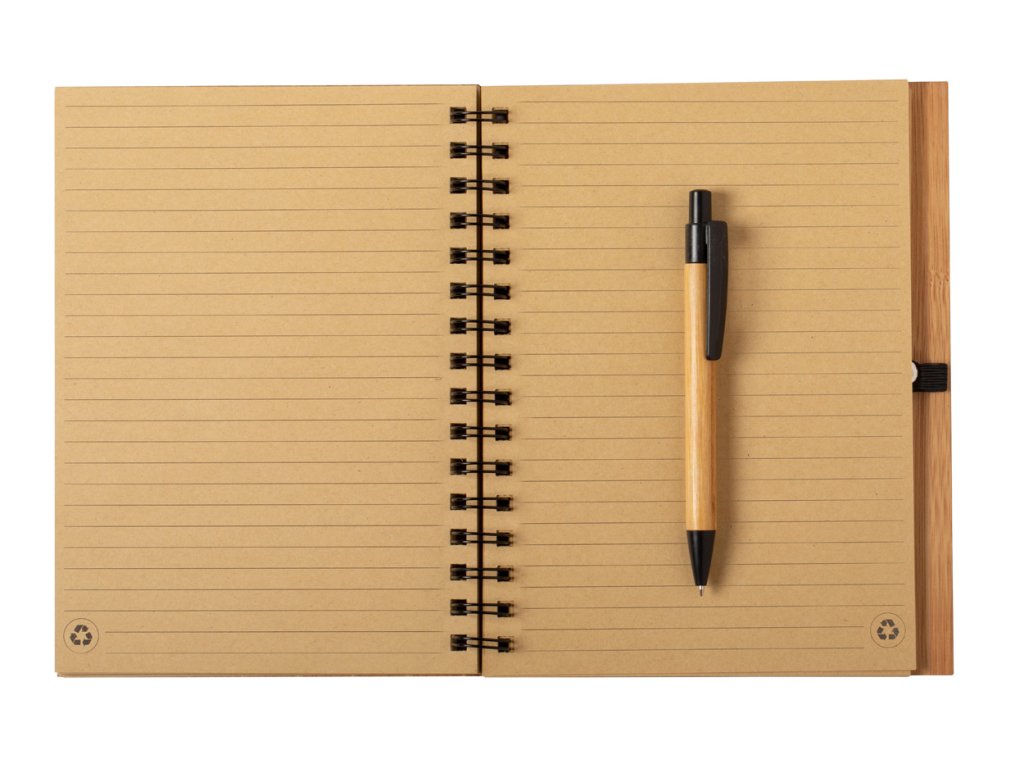 Blok A5 se spirálou v bambusových deskách s 80 linkovanými listy.