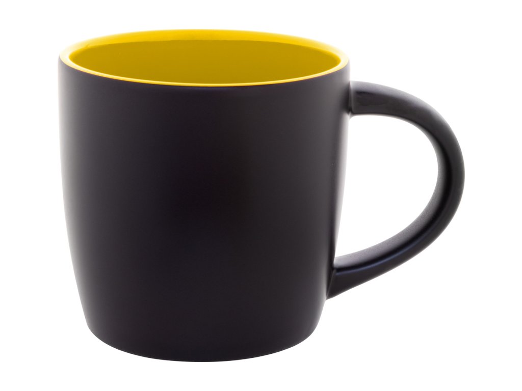 Černý keramický hrnek s barevným vnitřkem, 300 ml.