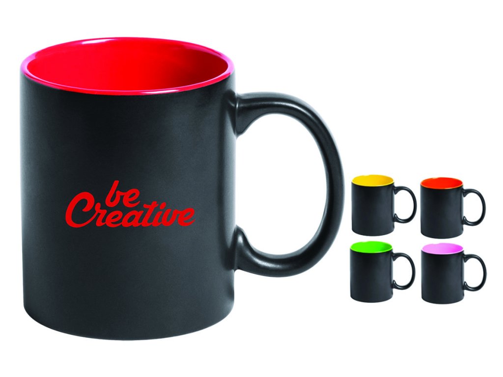 Černý keramický hrnek s barevným vnitřkem, 350ml.