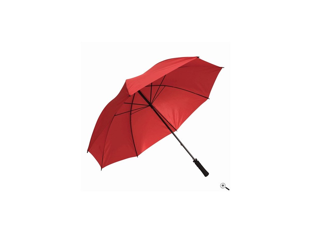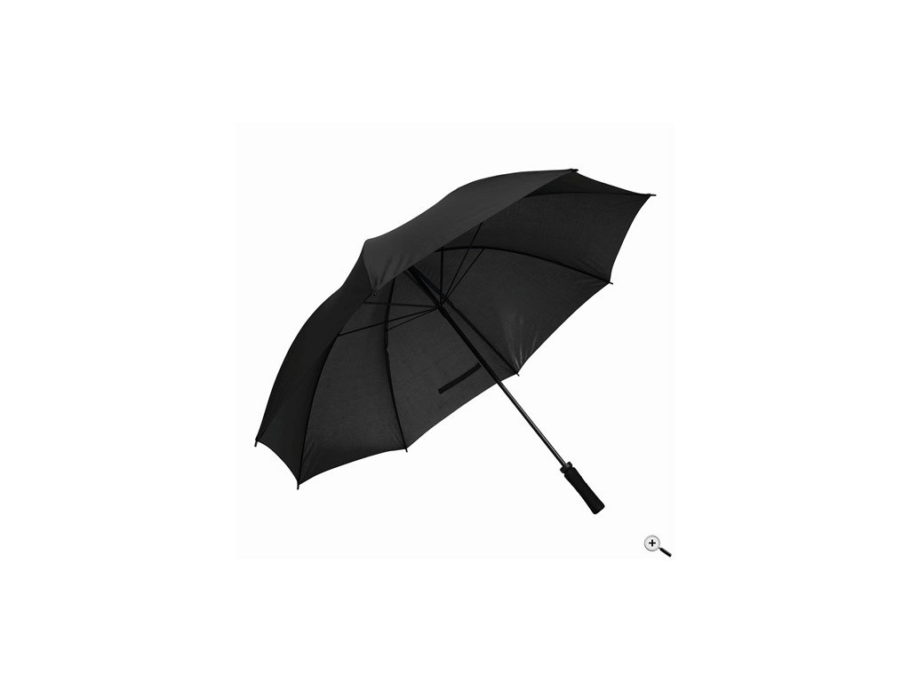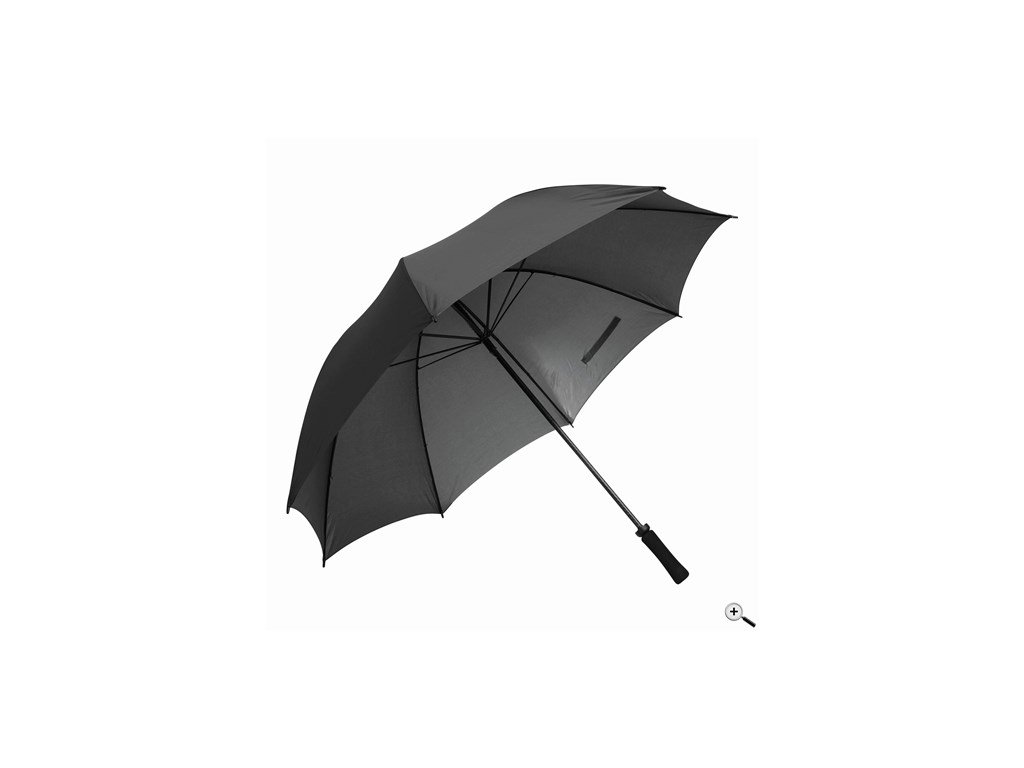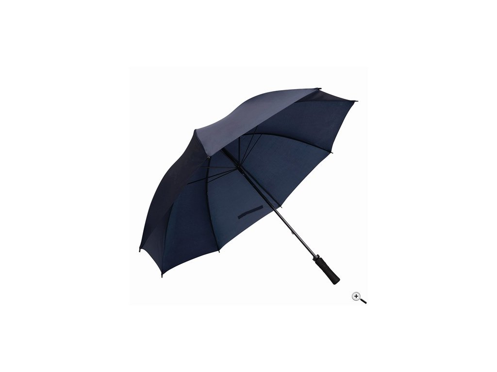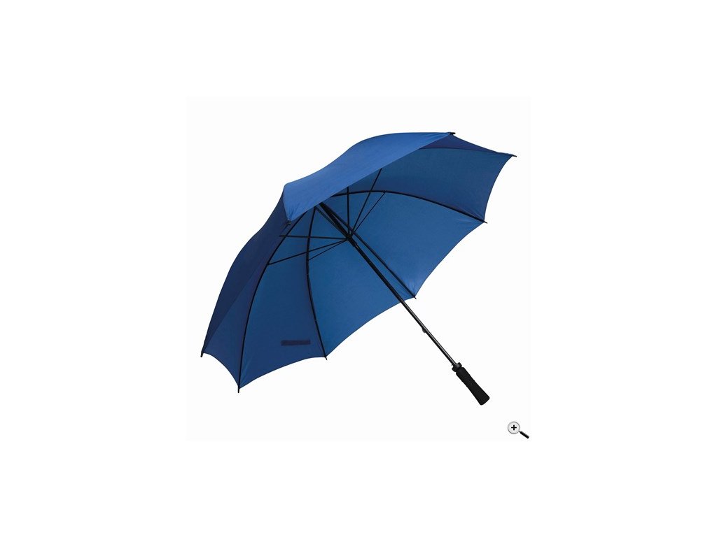 Větruodolný deštník , se sklolaminátovou hřídelí, plastovými špičkami, černými kovovými žebry a větruodolným odpružením s rychlým návratem a EVA madlem, polyesterová stříška, zapínání na suchý zip.