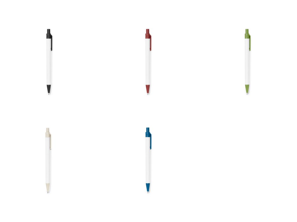 Kuličkové pero s tělem z recyklované lepenky. Klip, hrot a tlačítko z pšeničné slámy.