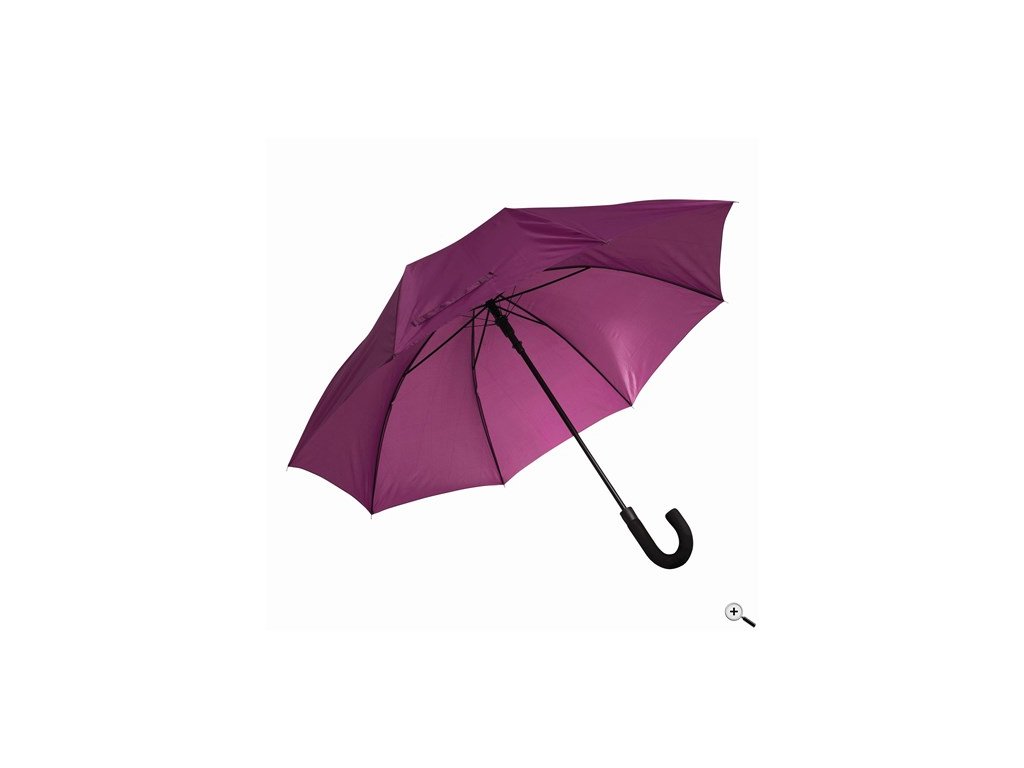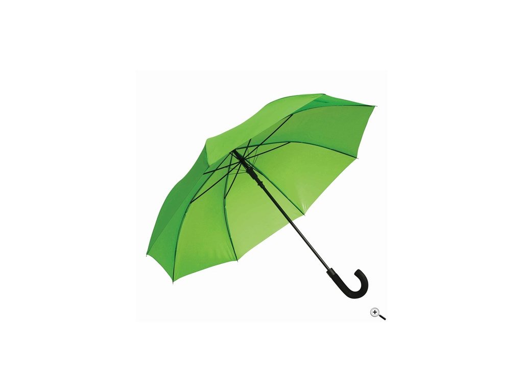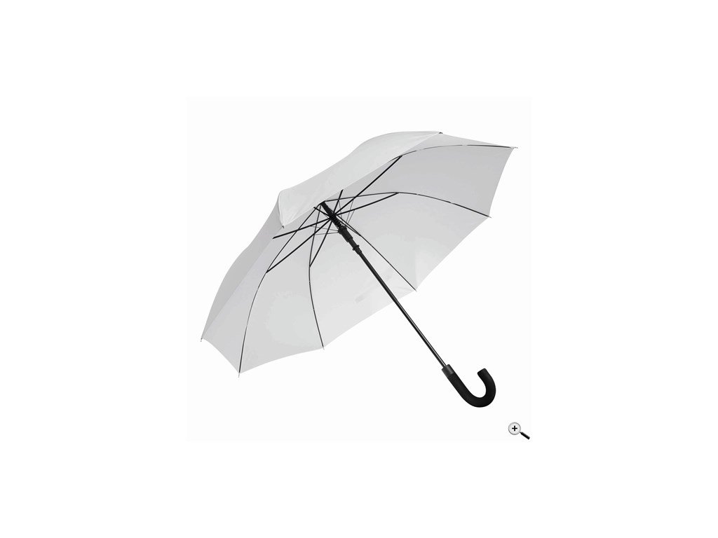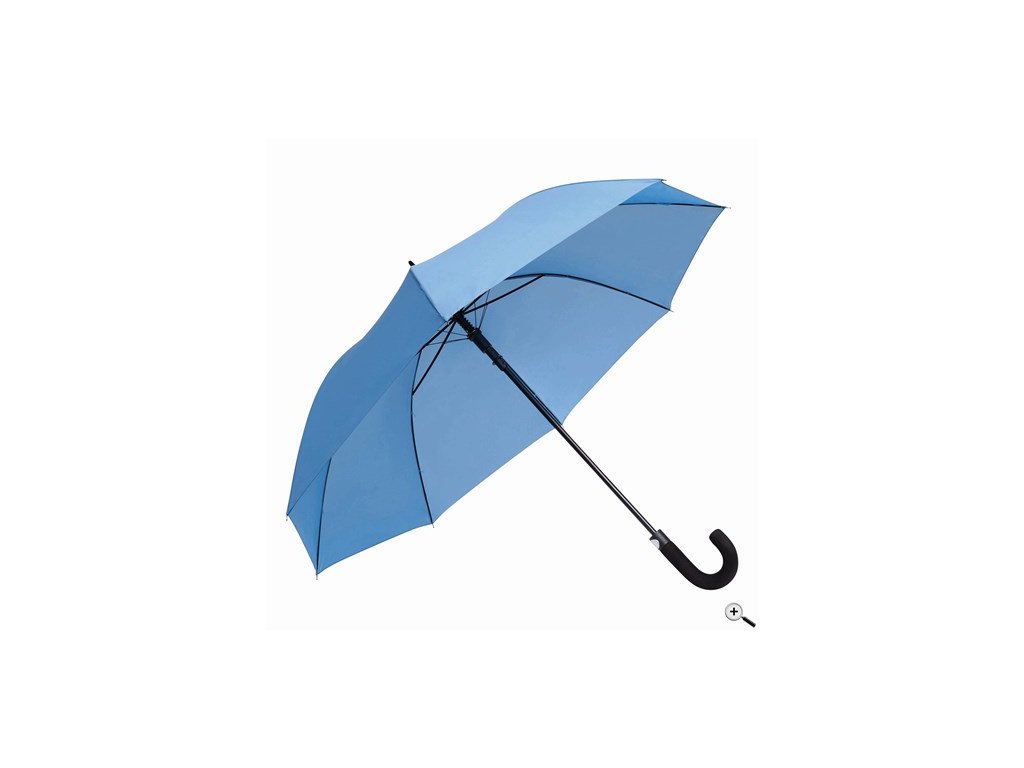 Automatický golfový deštník s černým kovovým dříkem, žebry a špičkami, černá EVA křivá rukojeť s patentkou ve stříbrné barvě, polyesterová stříška se speciální voděodolnou vrstvou, zapínání na suchý zip