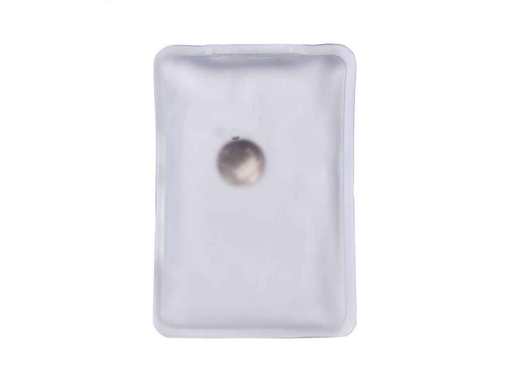 Transparentní hřejivý polštářek s barevný gelem, opakovaně použitelný.