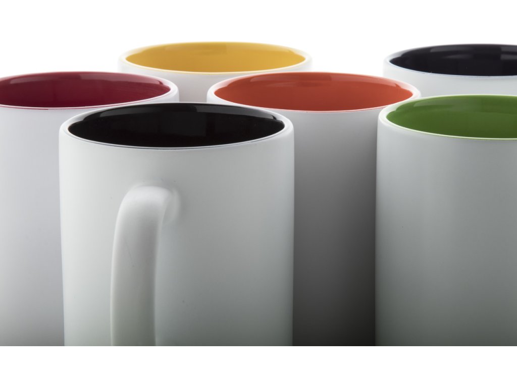 Bílý keramický hrnek, barevný uvnitř, 350ml.