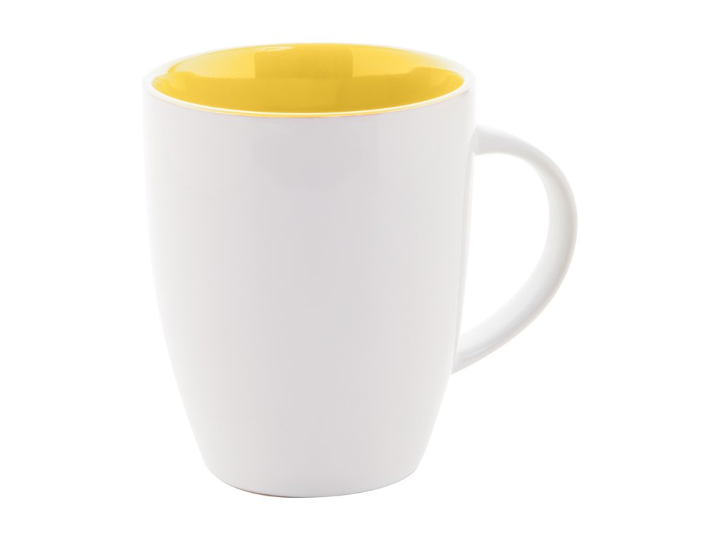 Vysoce kvalitní bílý keramický hrnek s barevným vnitřkem, objem 300 ml.