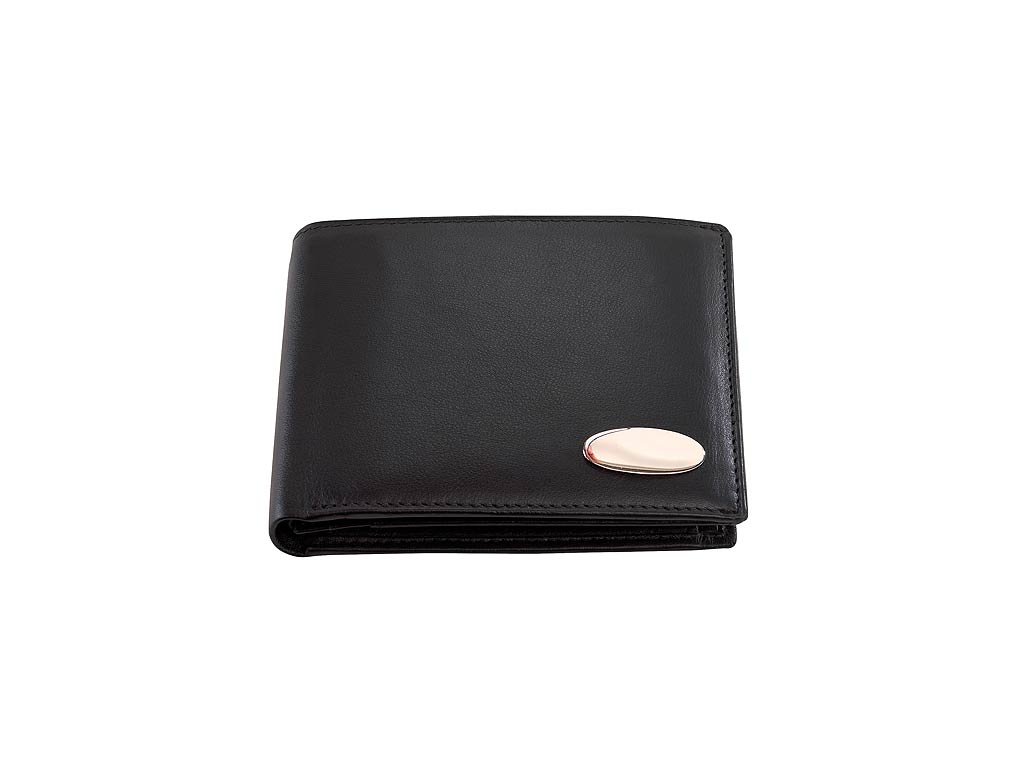 Kožená peněženka DAX z pravé kůže se zasouvacími kapsami na vnitřní straně na karty, 1 síťová kapsa na ID, 2 velké kapsy na bankovky,1 kapsa na mince s drukem,
