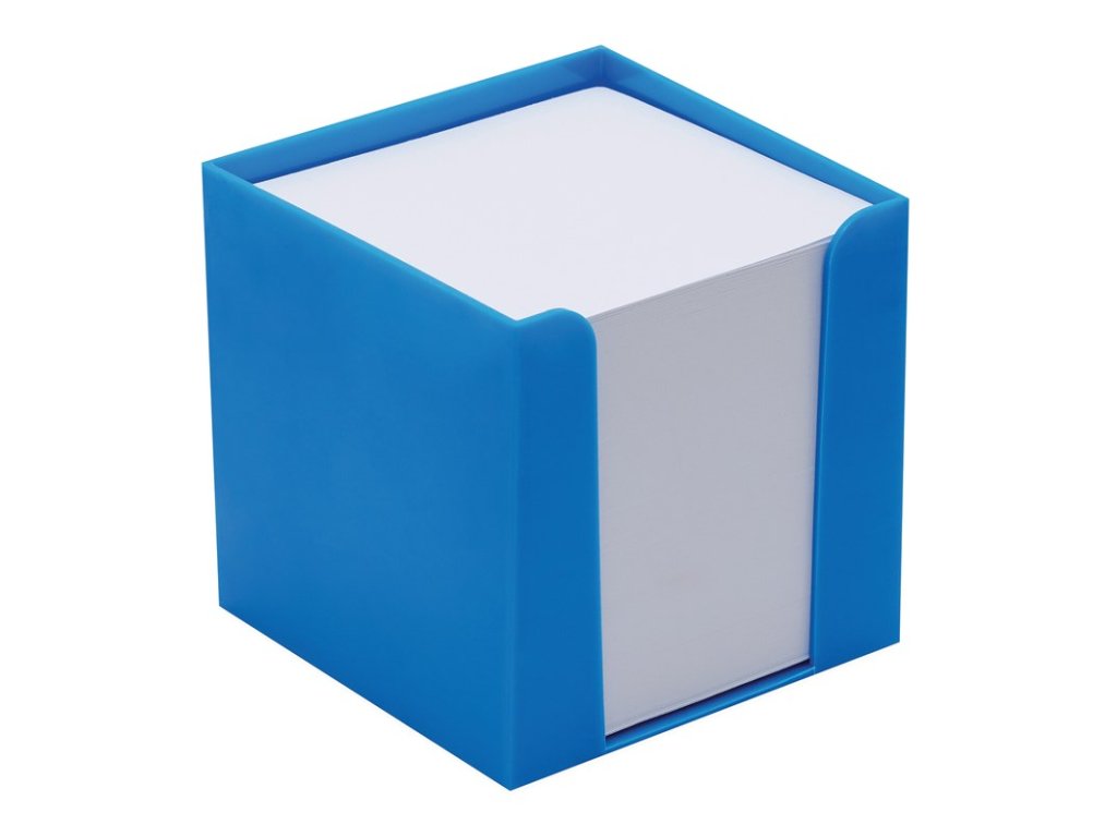Memo kostka: plastová krabička s velkým otvorem a 900 bílými bezdřevými listy (80 g/m²) – Vyrobeno v Evropě