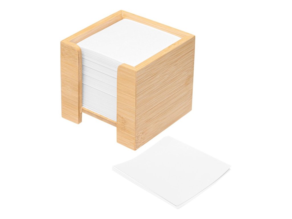 Memo kostka: bambusová krabička s velkým otvorem a 900 bílými bezdřevými listy (70 g/m²)