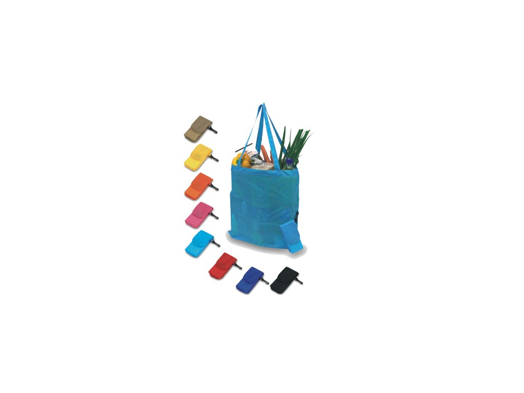 Nákupní taška, skládací do malého balíčku s karabinkou. Různé barvy.Materiál: polyesterRozměry: 40 x 38