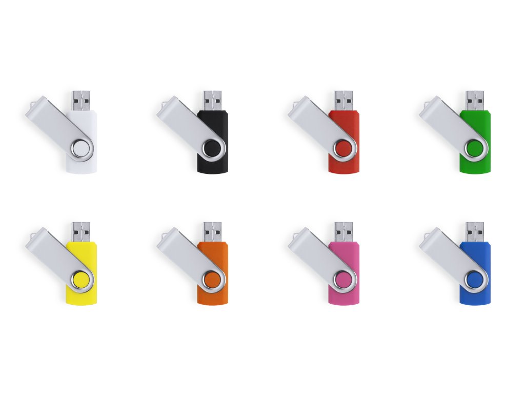 Flashdisk s kapacitou 32 GB, s otočným mechanismem, měkkým tělem a kovovým klipem.