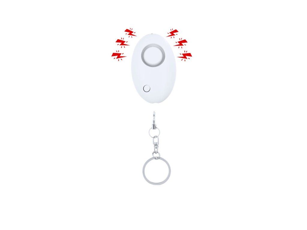 Osobní alarm s LED baterkou, vybavený výkonným zvonkem hlasitosti pro upozornění na mimořádné události.