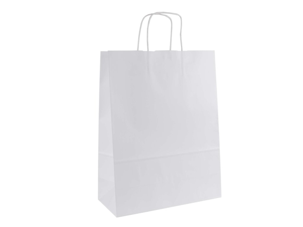 Papírová taška-bílá-24x11x33, gramáž 90g, kroucená ucha.