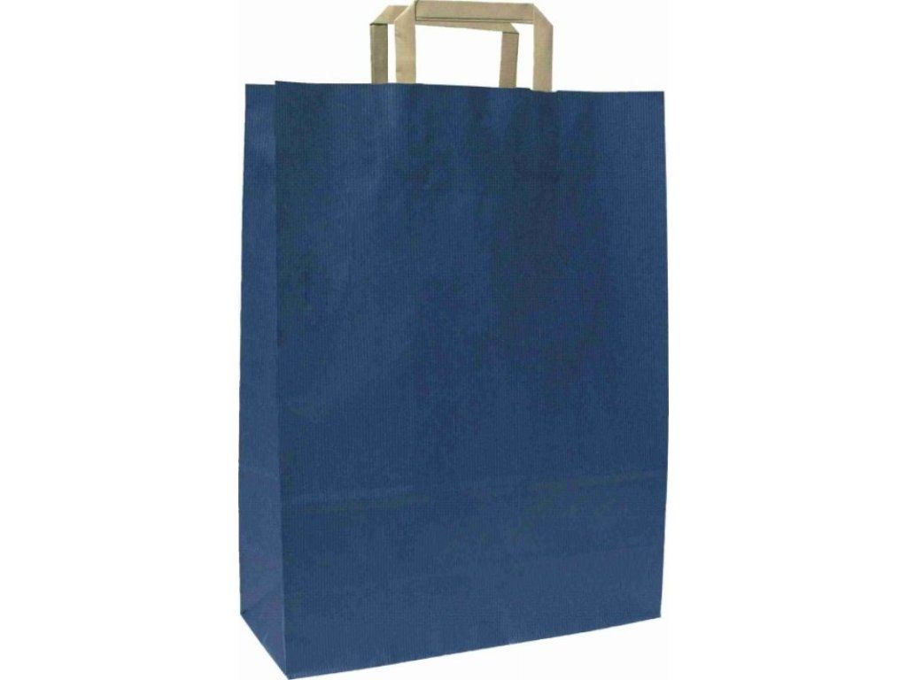 Barevná papírová taška o rozměru 18x8x25, plochá hnědá papírová držadla.
