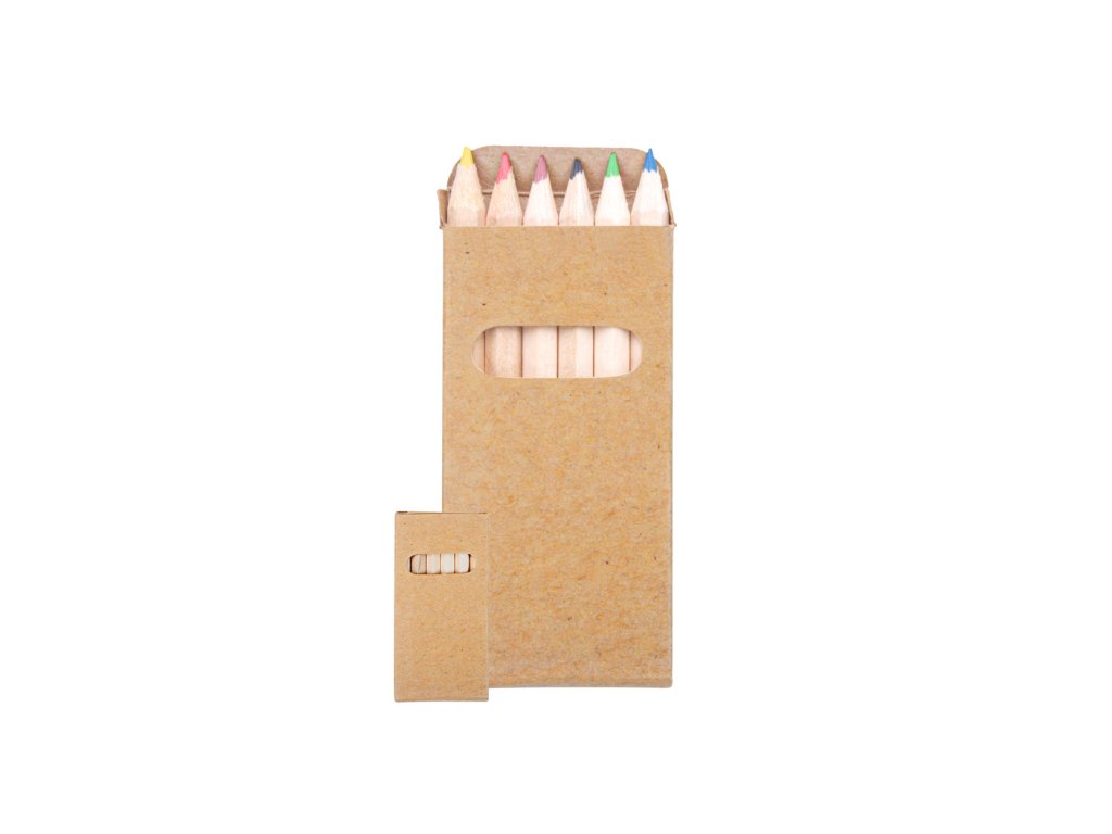 Dřevěné pastelky 6 kusů v papírové krabičce.