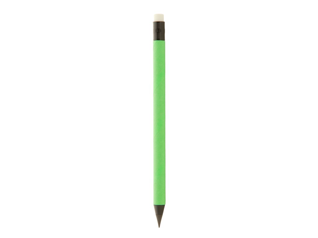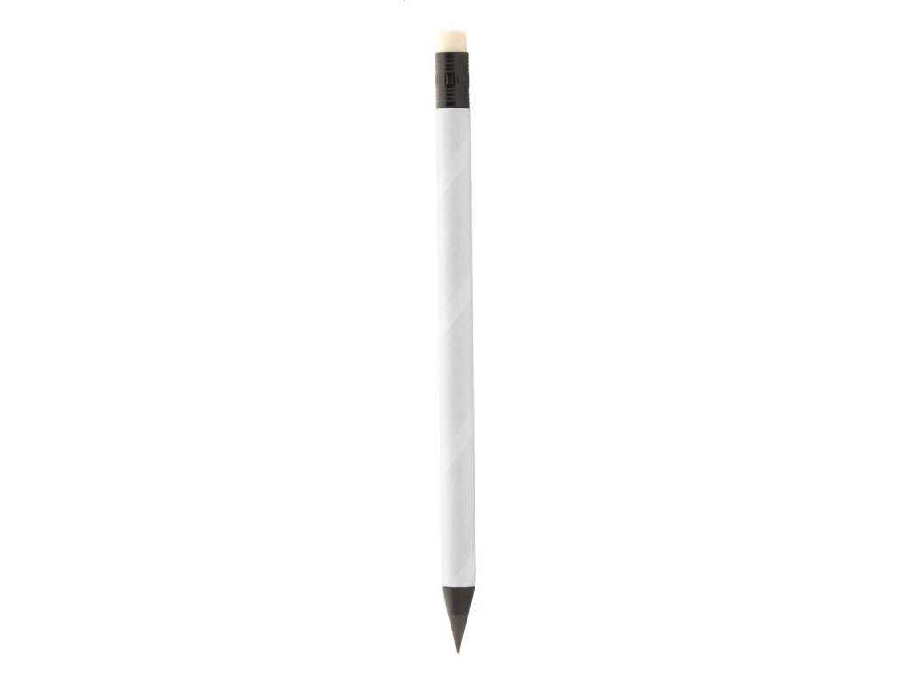 Bez inkoustové pero s dlouhou životností z recyklovaného papíru s černými detaily a gumou. S hrotem z kovové slitiny, který oxiduje papír.
