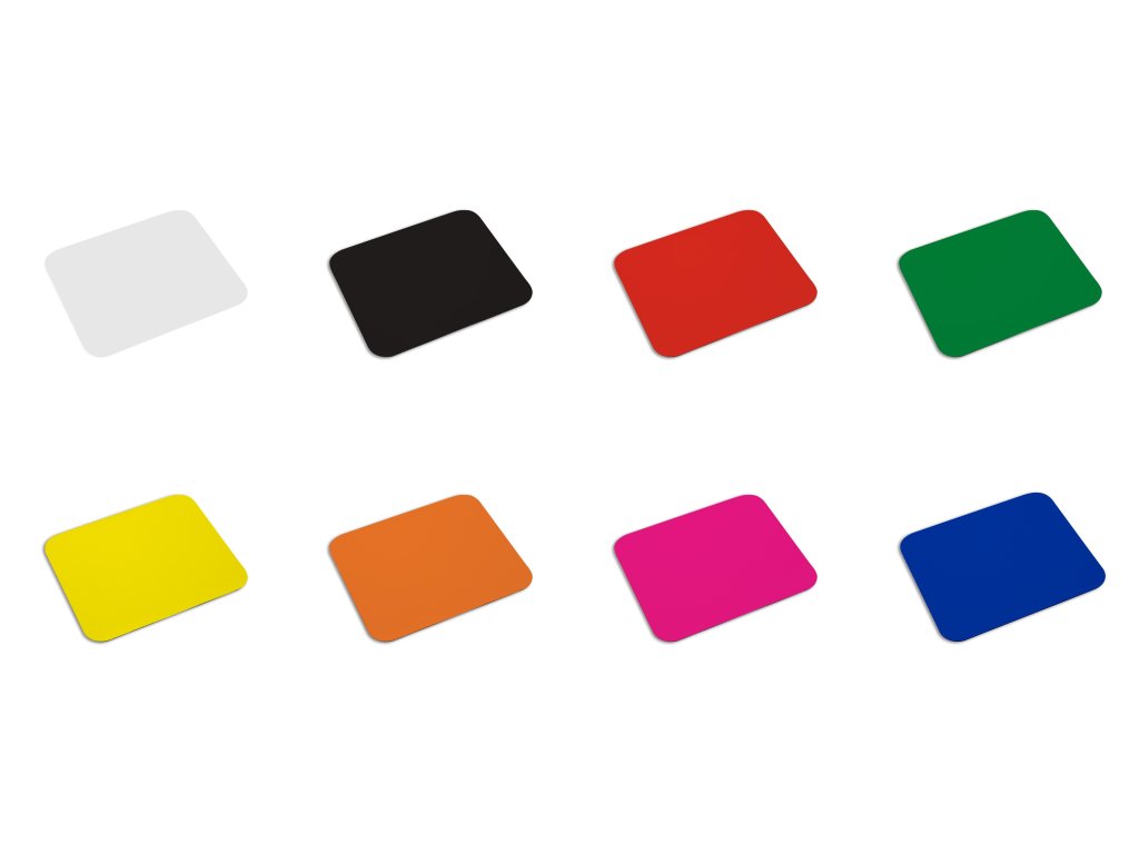 Podložka z měkkého polyesteru v jasných barvách a s protiskluzovou silikonovou základnou.