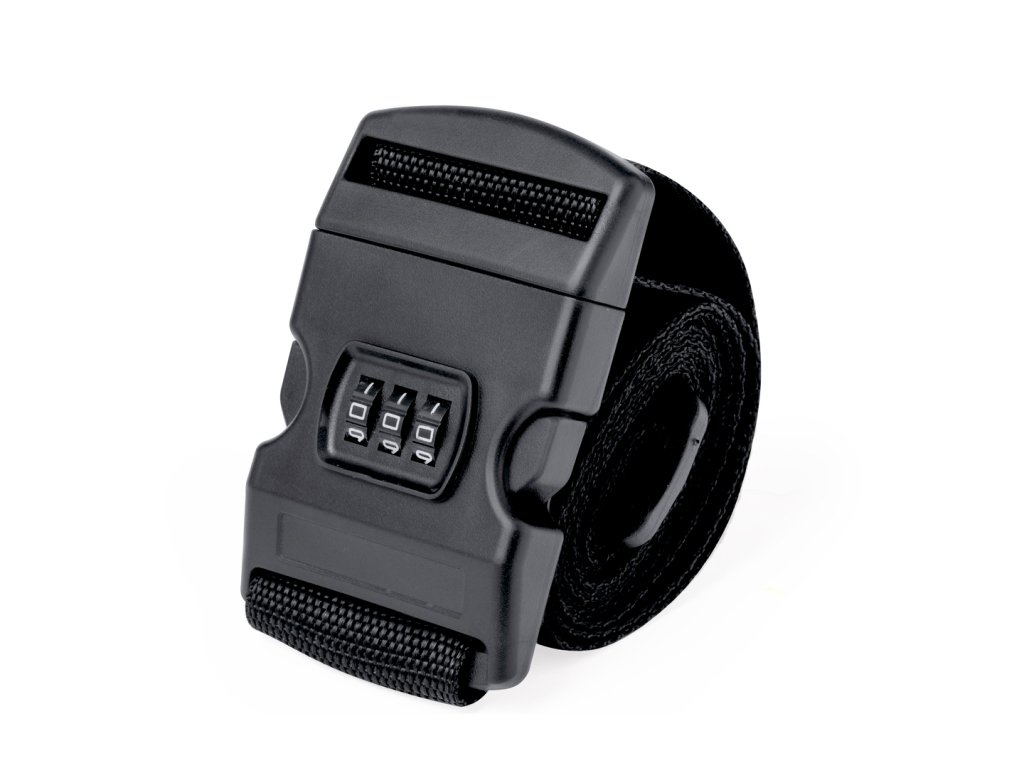 Nastavitelný popruh na zavazadla.. S nastavitelným zapínáním na přezku a 3místným heslem. V černé barvě a délce 200cm.