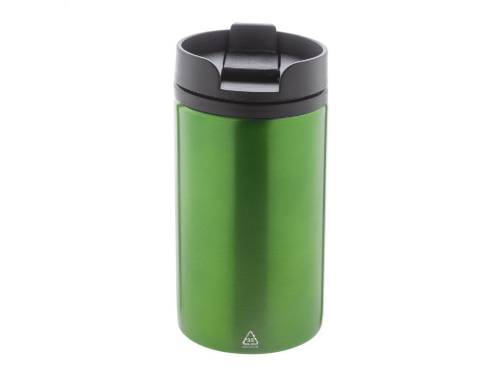 Dvoustěnný termo hrnek s izolací z recyklované nerezové oceli s PP plastem uvnitř a víčkem na pití. 250 ml.