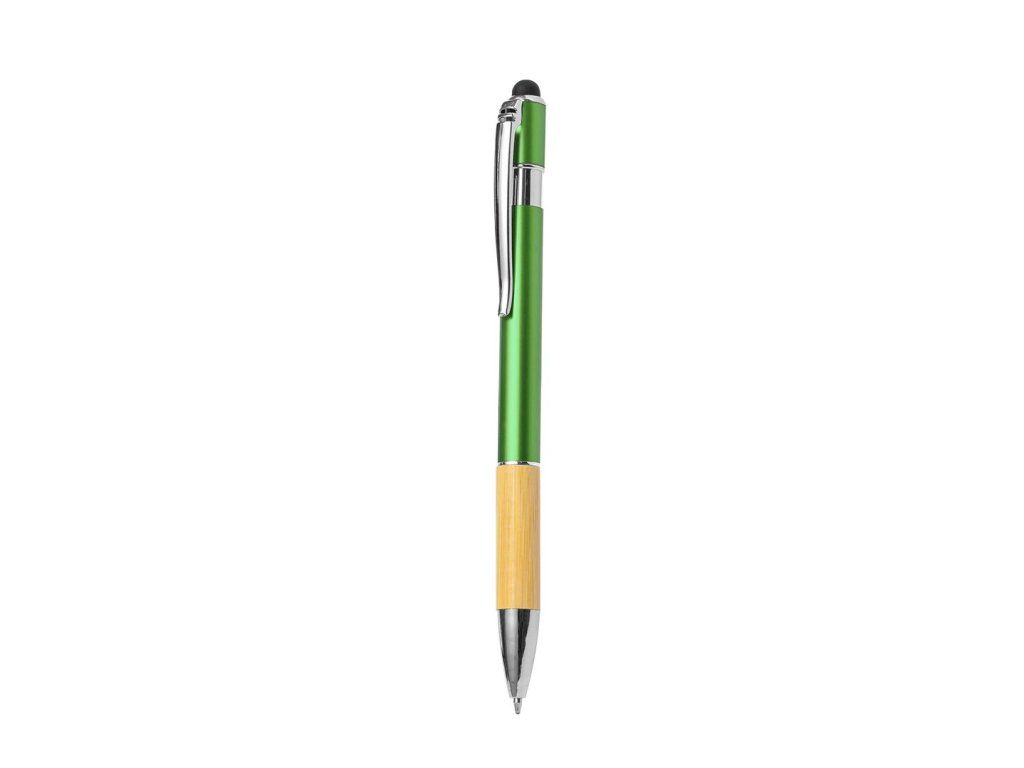 Lesklé hliníkové kuličkové pero s bambusovým úchopem a tlačítkovým mechanismem s touchem.