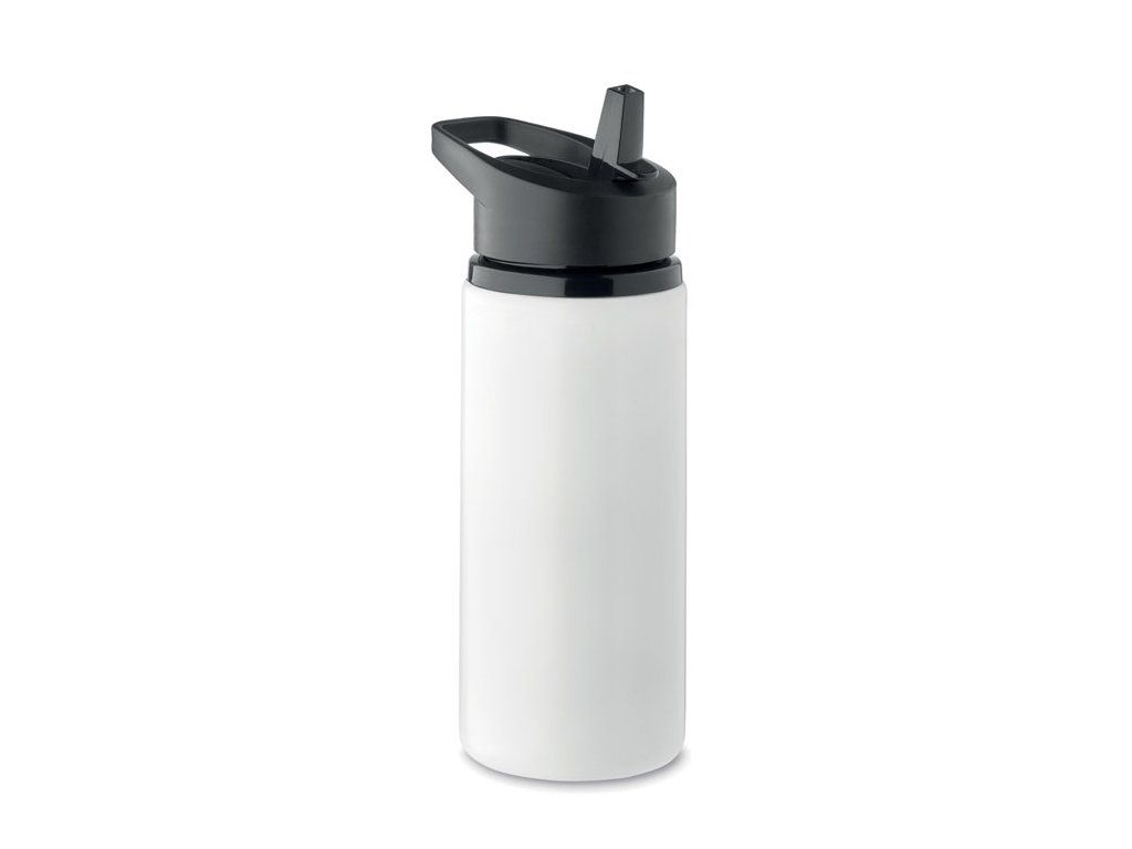 Jednostěnná láhev z recyklované nerezové oceli, skládacím náustkem, brčkem a víčkem s držadlem.