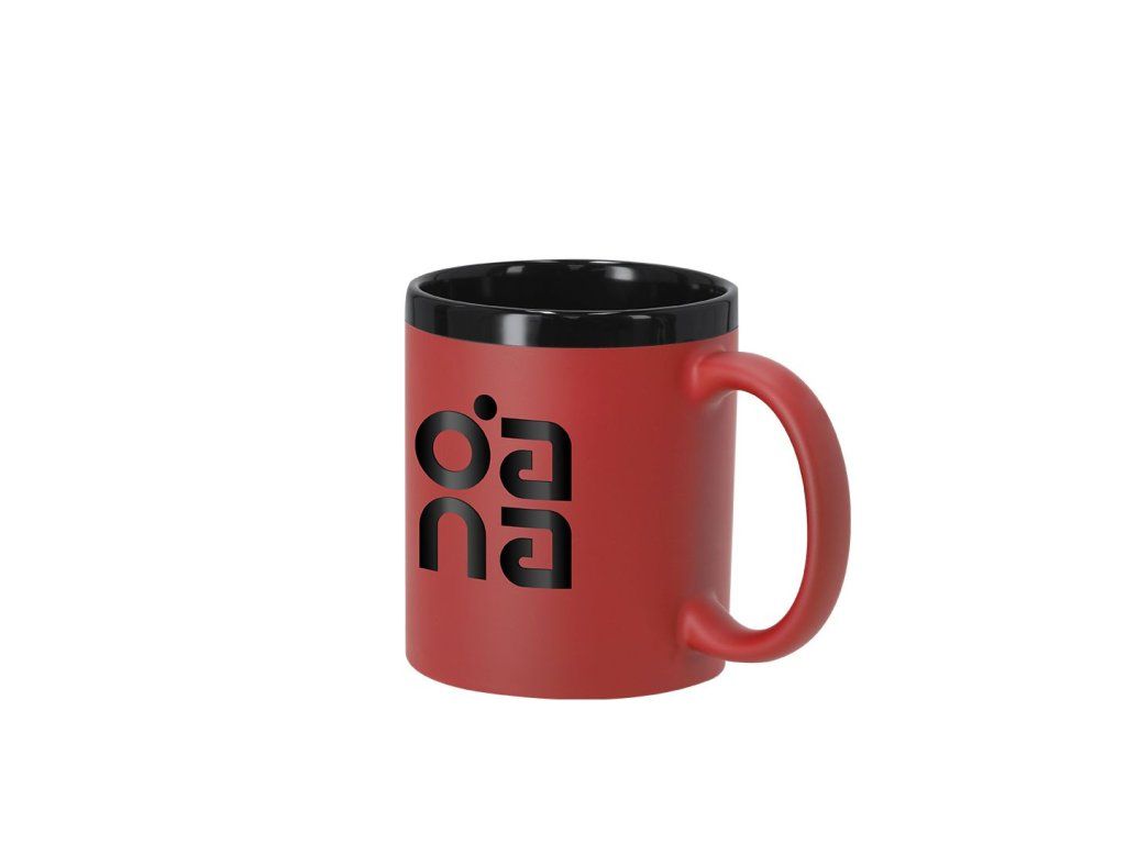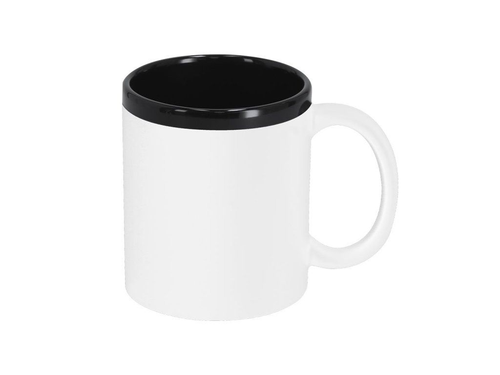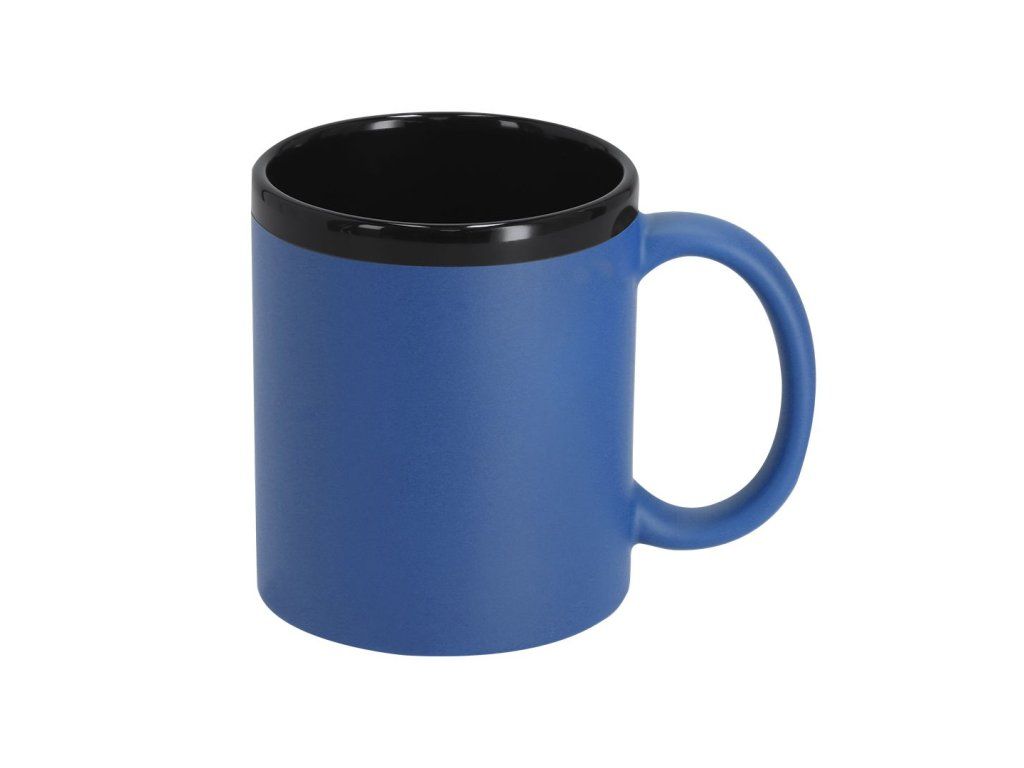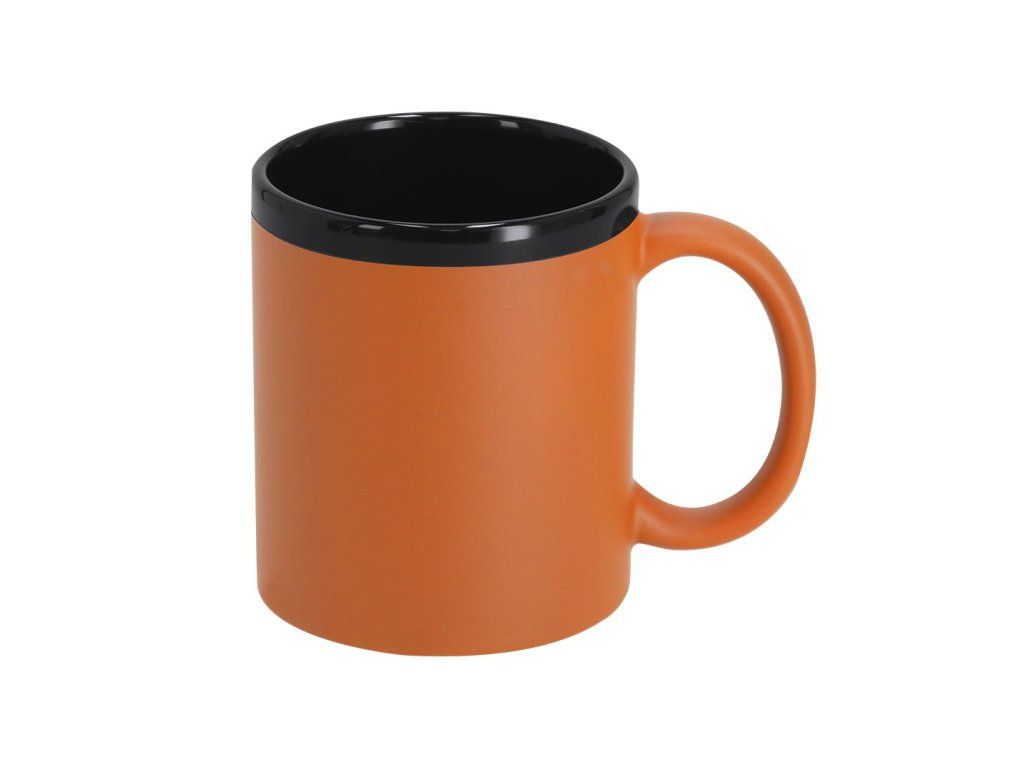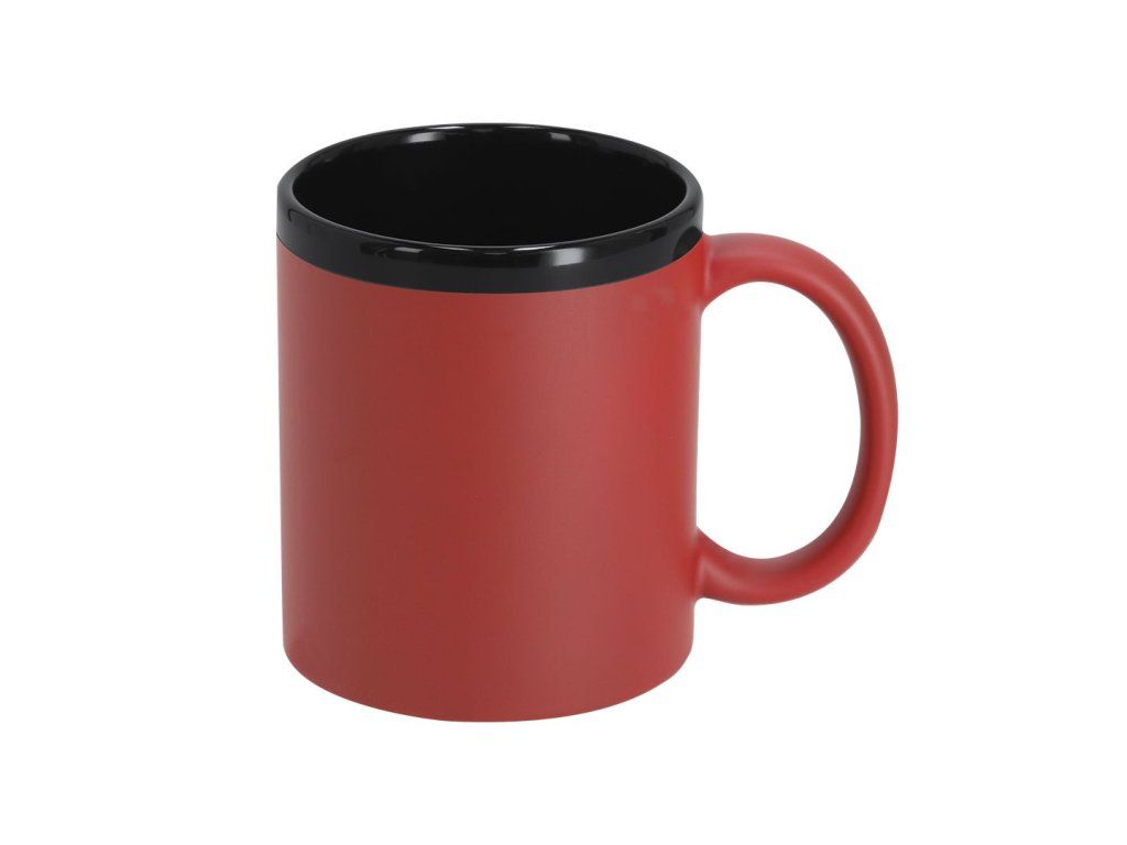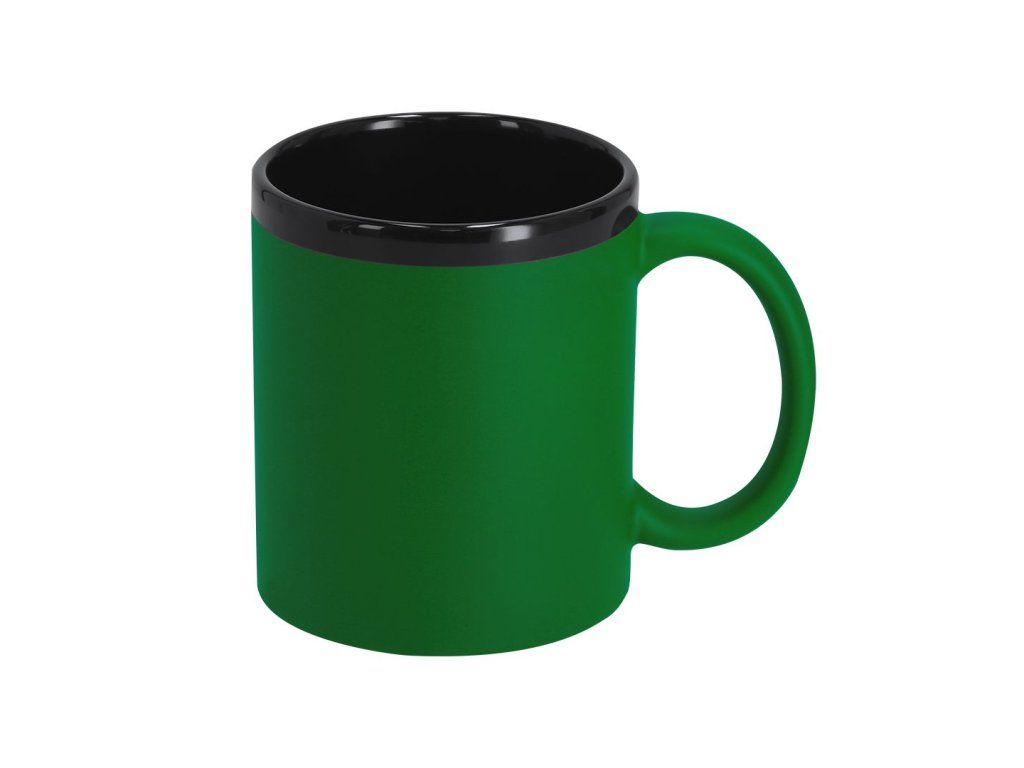 Keramický hrnek s černým interiérem a exteriérem s barevným gumovým povrchem.