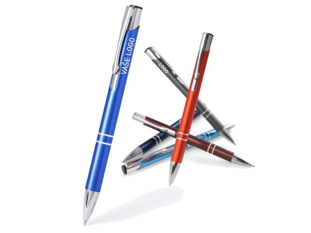 Kovová propiska se dvěma kroužky, stříbrné doplňky.