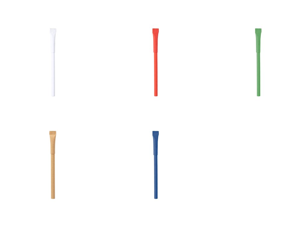 Přírodní kuličkové pero z recyklovaného kartonu a barevným krytem ve stejné barvě jako propiska.