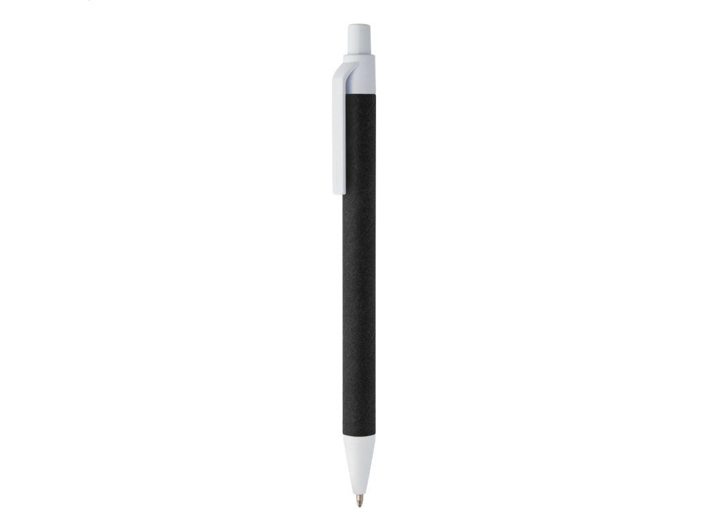 Kuličkové pero z recyklovaného papíru s černým tělem a barevnými recyklovanými ABS doplňky.