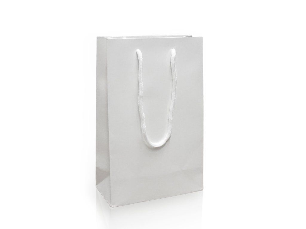 Taška - lamino s textilními šňůrkami 190gr.-lesklá bílá.