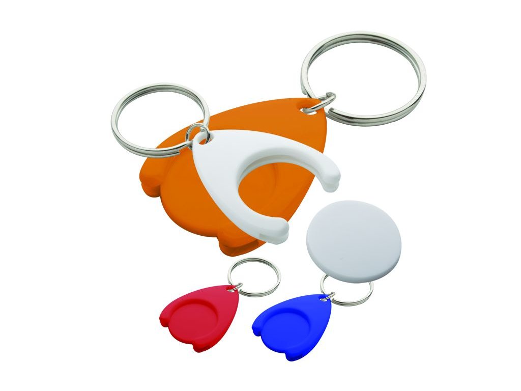 Plastový přívěšek na klíče s plastovým žetonem do nákupních vozíků.