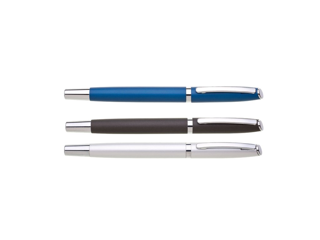 Roller se stříbrnými doplňky, odnímatelné víčko, keramická náplň modře píšící.