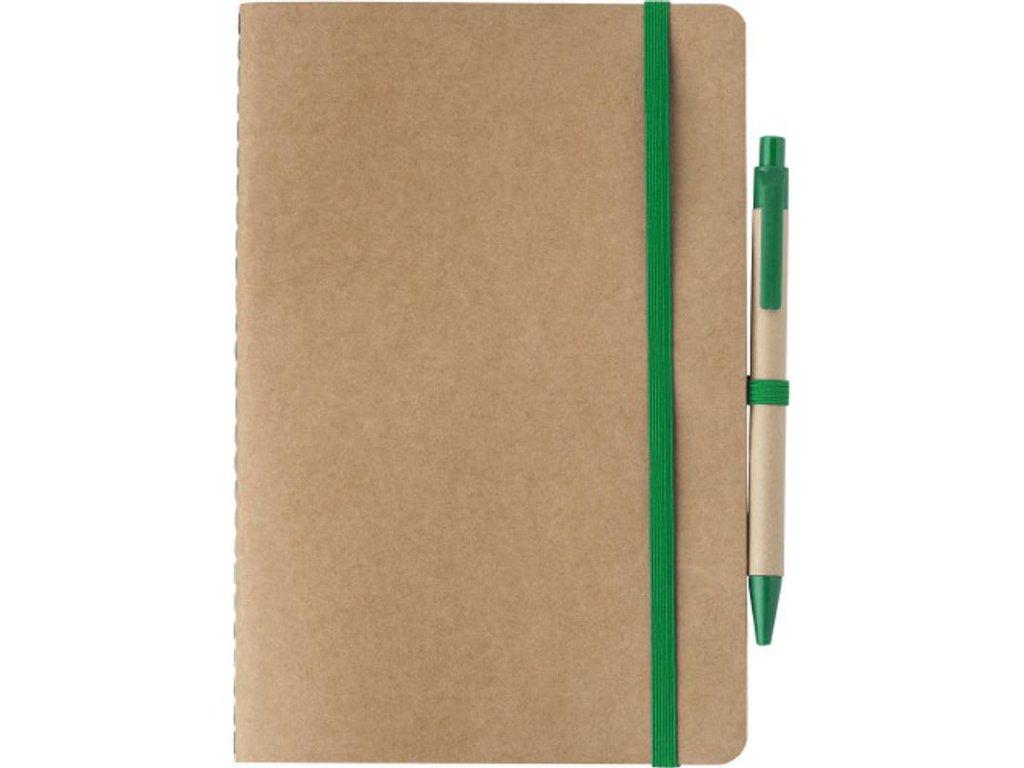 Zápisník z recyklovaného kartonu (A5) se 120 bílými listy a perem z lepenky.
