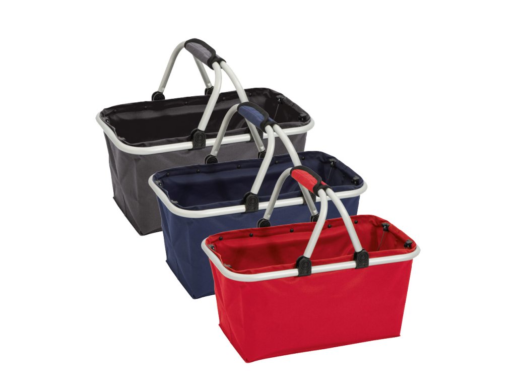 Skládací nákupní košík s hliníkovým rámem a kapsou na zip, možno složit.