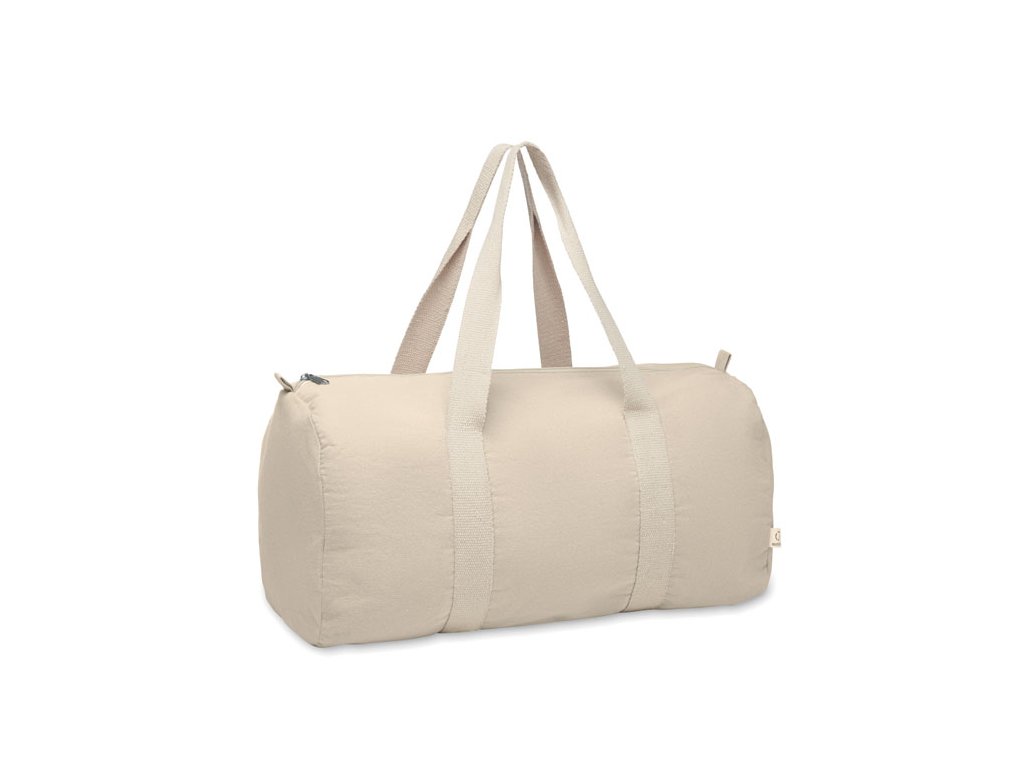 Sportovní nebo cestovní taška s boční přihrádkou na zip a vnitřní kapsou na zip z recyklované bavlny 320 g/m² (80 %) a recyklovaného polyesteru (20 %)