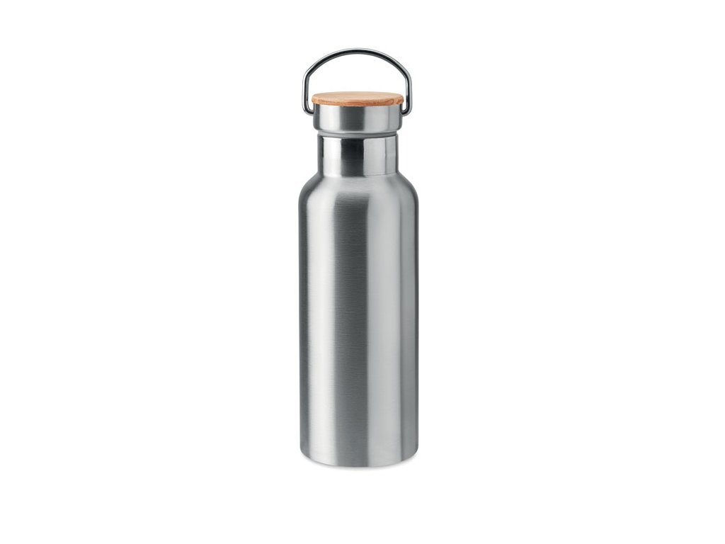 Dvoustěnná nerezová termoska s izolačním vakuem.