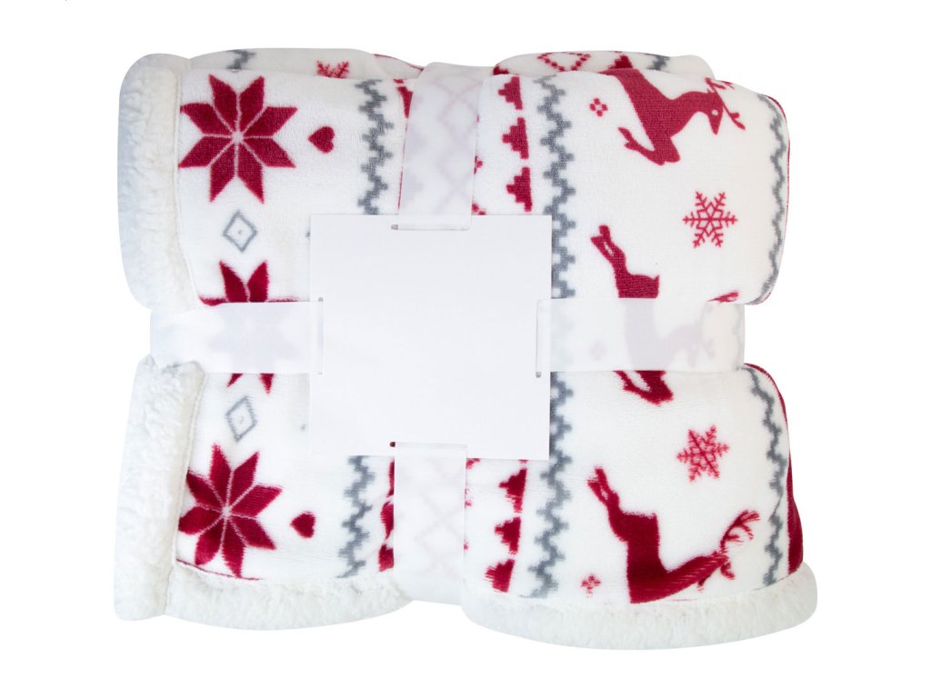 Dvouvrstvá vánoční deka 230 g/m² flanelového fleecu RPET a oboustrannou podšívkou z RPET sherpa fleecu 210 g/m².