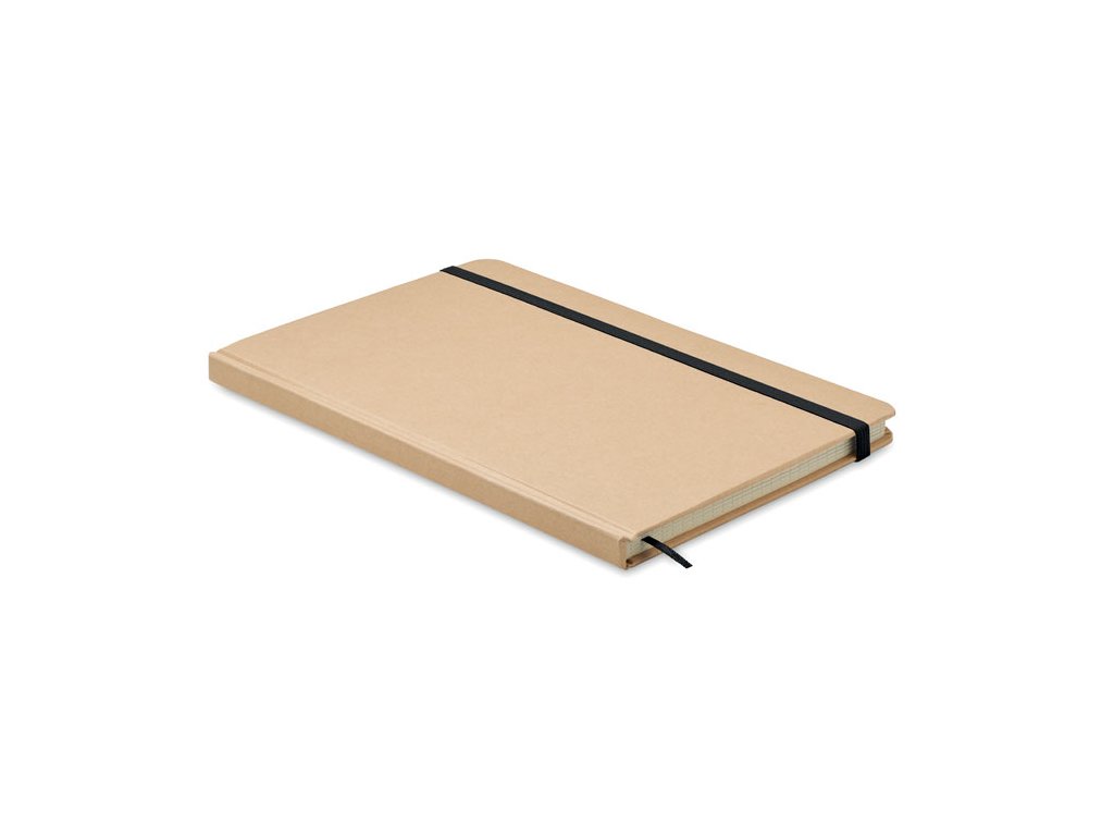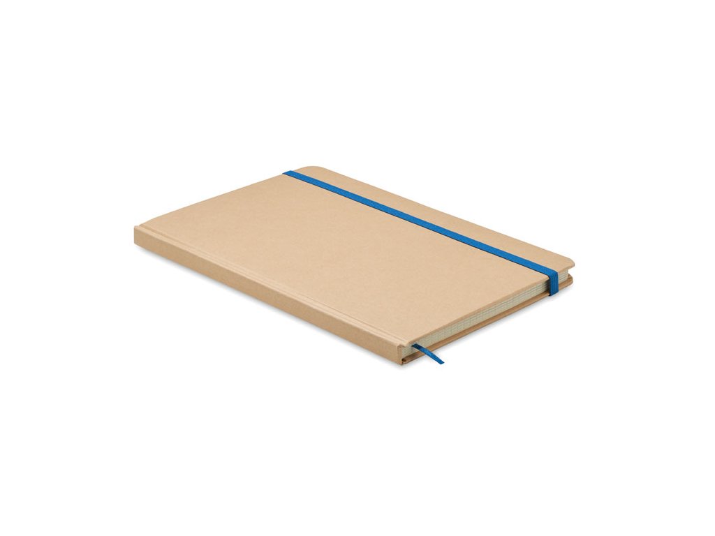 Zápisník formátu A5 s deskami z recyklovaného kartonu. 160 čtverečkovaných stran z recyklovaného papíru(80 listů). Uzavírací gumička a záložka.